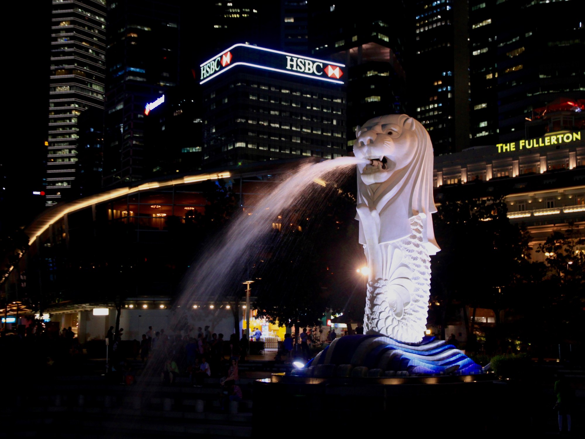 The Merlion is the symbol of the city. It is really a merger the words “mer” (sea) and “lion”, or in other words “sea lion”. It is embodied in what looks like a half lion half mermaid as a statue and fountain near downtown overlooking and shooting water into the bay. The statue is the marketing icon of the city (per Wikipedia).